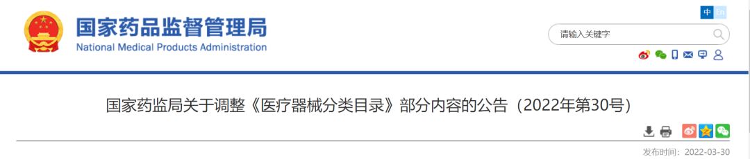 為進(jìn)一步深化醫(yī)療器械審評審批制度改革,依據(jù)醫(yī)療器械產(chǎn)業(yè)發(fā)展和監(jiān)管工作實(shí)際,按照《醫(yī)療器械監(jiān)督管理?xiàng)l例》《醫(yī)療器械分類目錄動態(tài)調(diào)整工作程序》有關(guān)要求,國家藥監(jiān)局決定對《醫(yī)療器械分類目錄》部分內(nèi)容進(jìn)行調(diào)整?,F(xiàn)將有關(guān)事項(xiàng)公告如下: