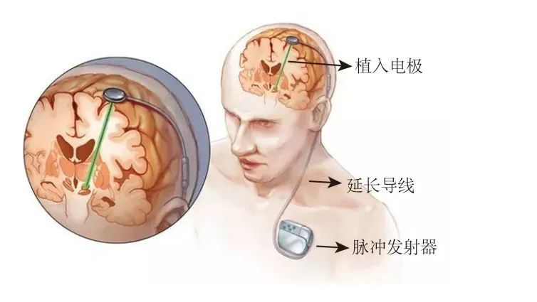 在發(fā)病初期,藥物治療是首選,后期隨著疾病進(jìn)展,藥物逐漸失去療效,就可以使用目前被廣泛認(rèn)可的首選外科療法——腦深部電刺激療法(Deep Brain Stimulation,DBS),也稱腦起搏器,它是一種有源植入醫(yī)療器械,于20世紀(jì)70年代出現(xiàn),是通過(guò)立體定向技術(shù),將電極植入腦內(nèi)特定核團(tuán),連接植入胸部的脈沖發(fā)生器,發(fā)放電脈沖對(duì)特定核團(tuán)神經(jīng)元的功能進(jìn)行調(diào)控,以改善癥狀,是目前國(guó)際上最先進(jìn)的神經(jīng)調(diào)控技術(shù),用于藥物不能有效控制運(yùn)動(dòng)障礙癥狀的帕金森患者。