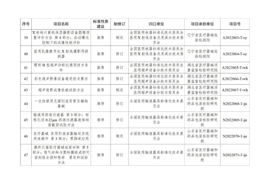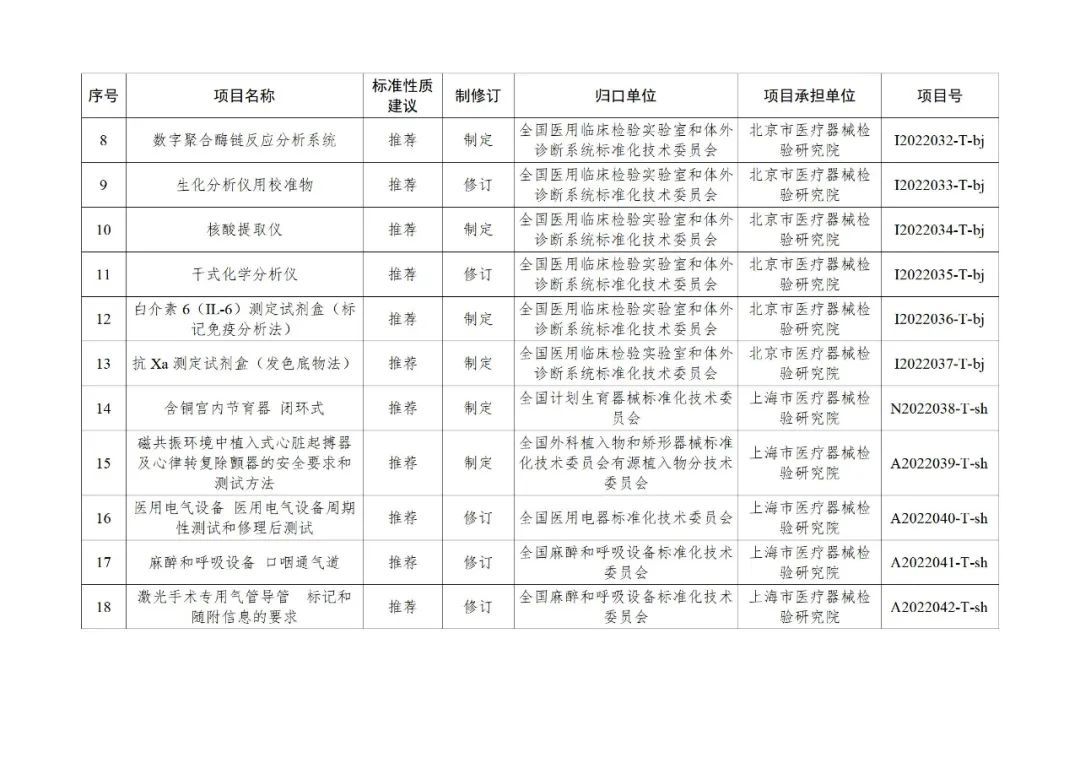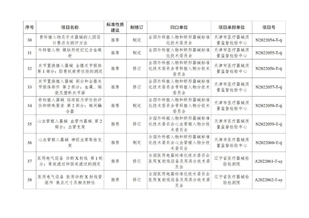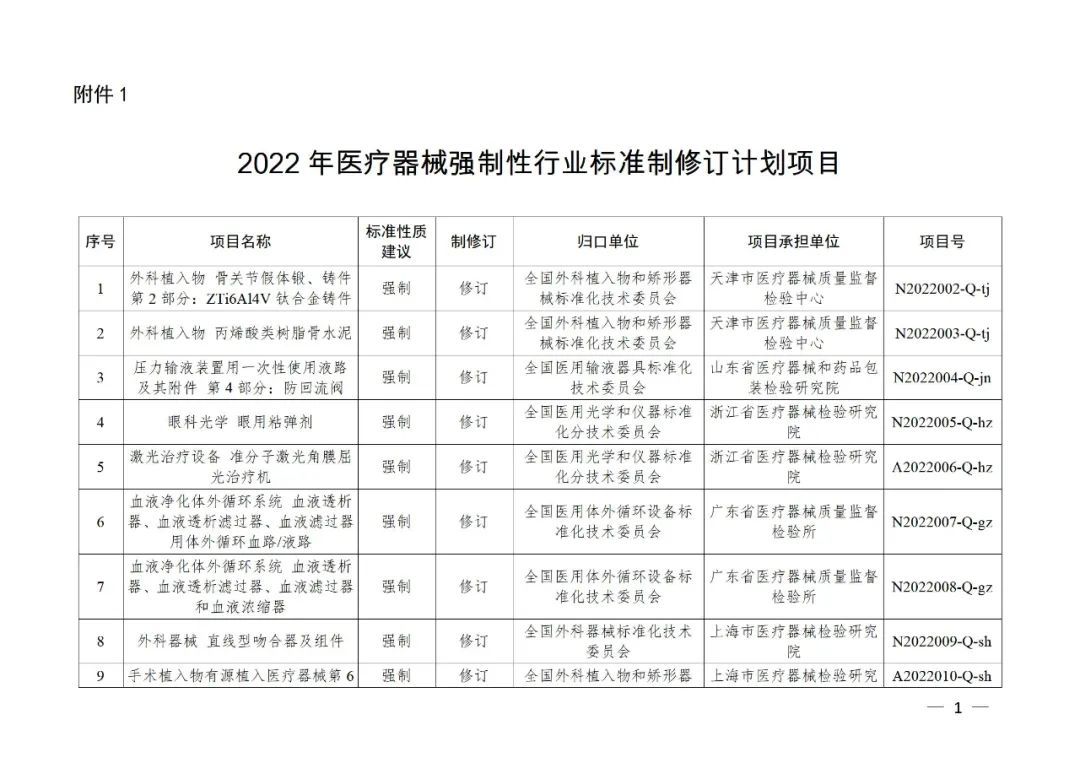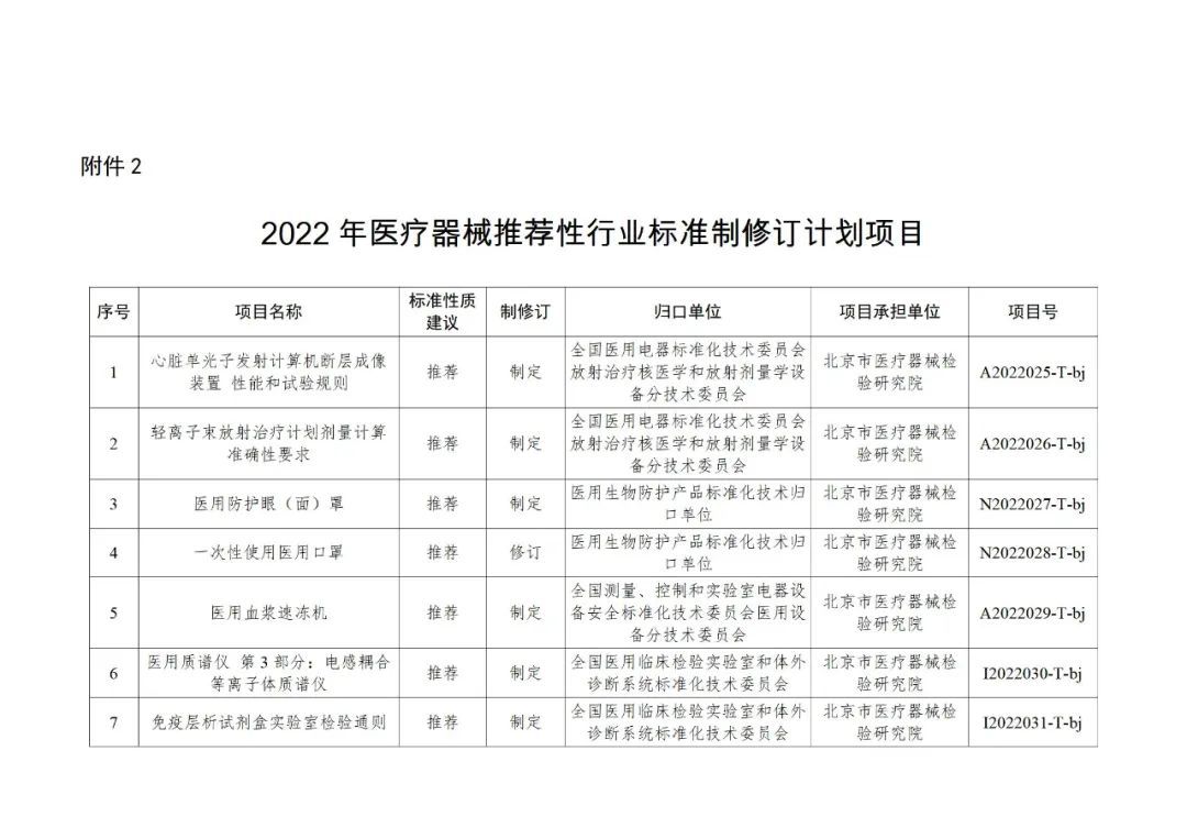為貫徹國務(wù)院辦公廳《關(guān)于全面加強藥品監(jiān)管能力建設(shè)的實施意見》,落實《“十四五”國家藥品安全及促進(jìn)高質(zhì)量發(fā)展規(guī)劃》有關(guān)要求,按照國家藥監(jiān)局醫(yī)療器械行業(yè)標(biāo)準(zhǔn)制修訂工作部署,現(xiàn)將2022年醫(yī)療器械行業(yè)標(biāo)準(zhǔn)制修訂計劃項目印發(fā)給你們,有關(guān)要求通知如下: