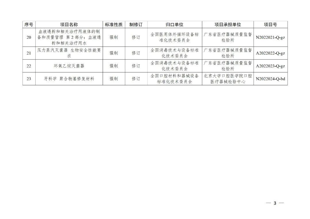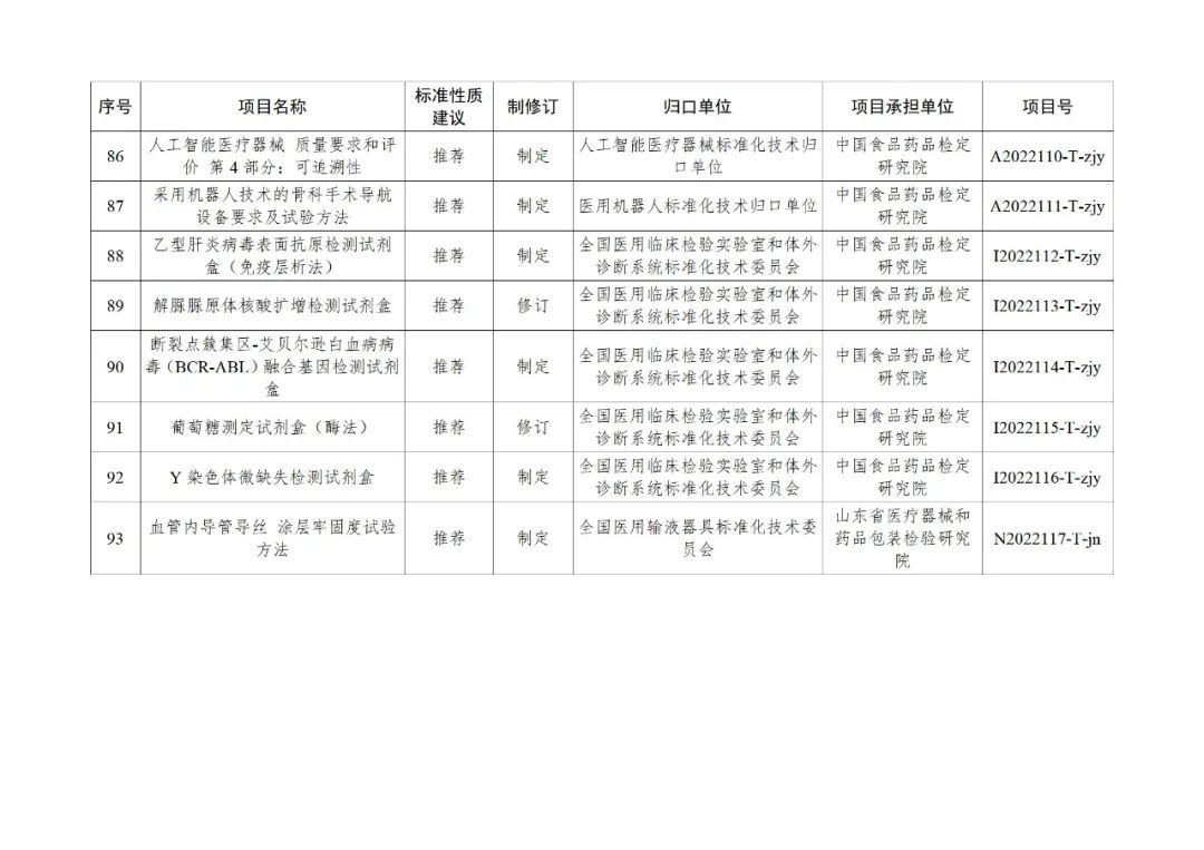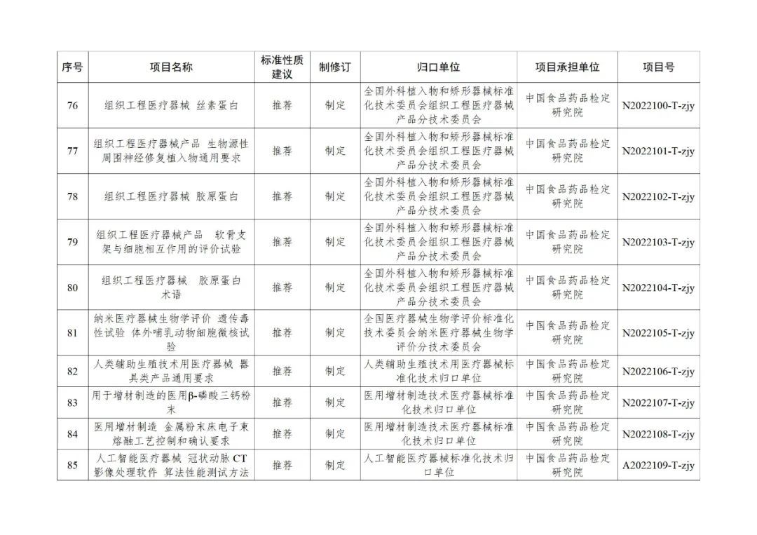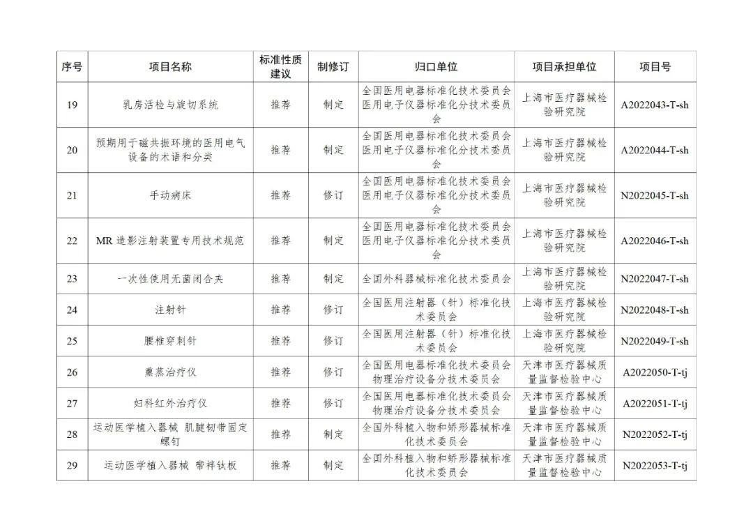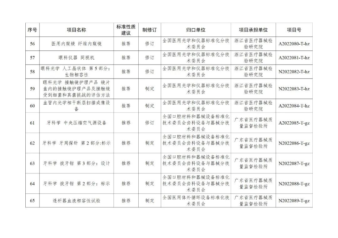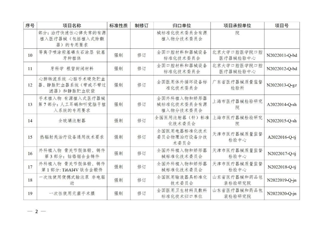 為貫徹國務(wù)院辦公廳《關(guān)于全面加強藥品監(jiān)管能力建設(shè)的實施意見》,落實《“十四五”國家藥品安全及促進(jìn)高質(zhì)量發(fā)展規(guī)劃》有關(guān)要求,按照國家藥監(jiān)局醫(yī)療器械行業(yè)標(biāo)準(zhǔn)制修訂工作部署,現(xiàn)將2022年醫(yī)療器械行業(yè)標(biāo)準(zhǔn)制修訂計劃項目印發(fā)給你們,有關(guān)要求通知如下: