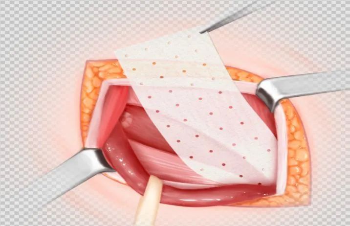 ③與組織有良好親和性與順應(yīng)性,緊密貼合可塑性好,生物相容性好,可降解吸收無(wú)異物殘留。