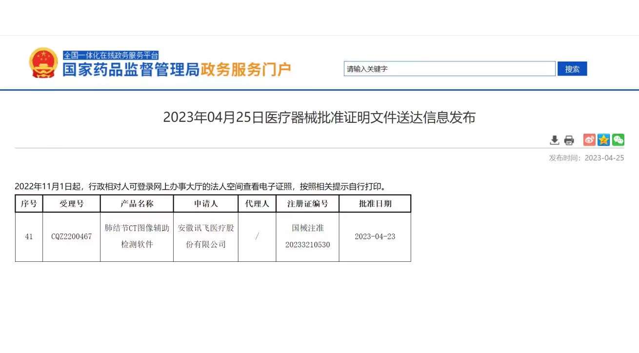 奧泰康助力獲得本年度第7張三類(lèi)證,系第12張AI醫(yī)療器械注冊(cè)證2023年4月25日,經(jīng)國(guó)家藥品監(jiān)督管理局公示,安徽訊飛醫(yī)療股份有限公司的“肺結(jié)節(jié)CT圖像輔助檢測(cè)軟件”(國(guó)械注準(zhǔn)20233210530)獲得NMPA批準(zhǔn)上市,奧泰康承擔(dān)本項(xiàng)目臨床試驗(yàn)服務(wù),系2023年奧泰康助力獲得的第7張三類(lèi)醫(yī)療器械注冊(cè)證,也是公司累計(jì)助力獲得的第12張人工智能(AI)醫(yī)療器械注冊(cè)證。