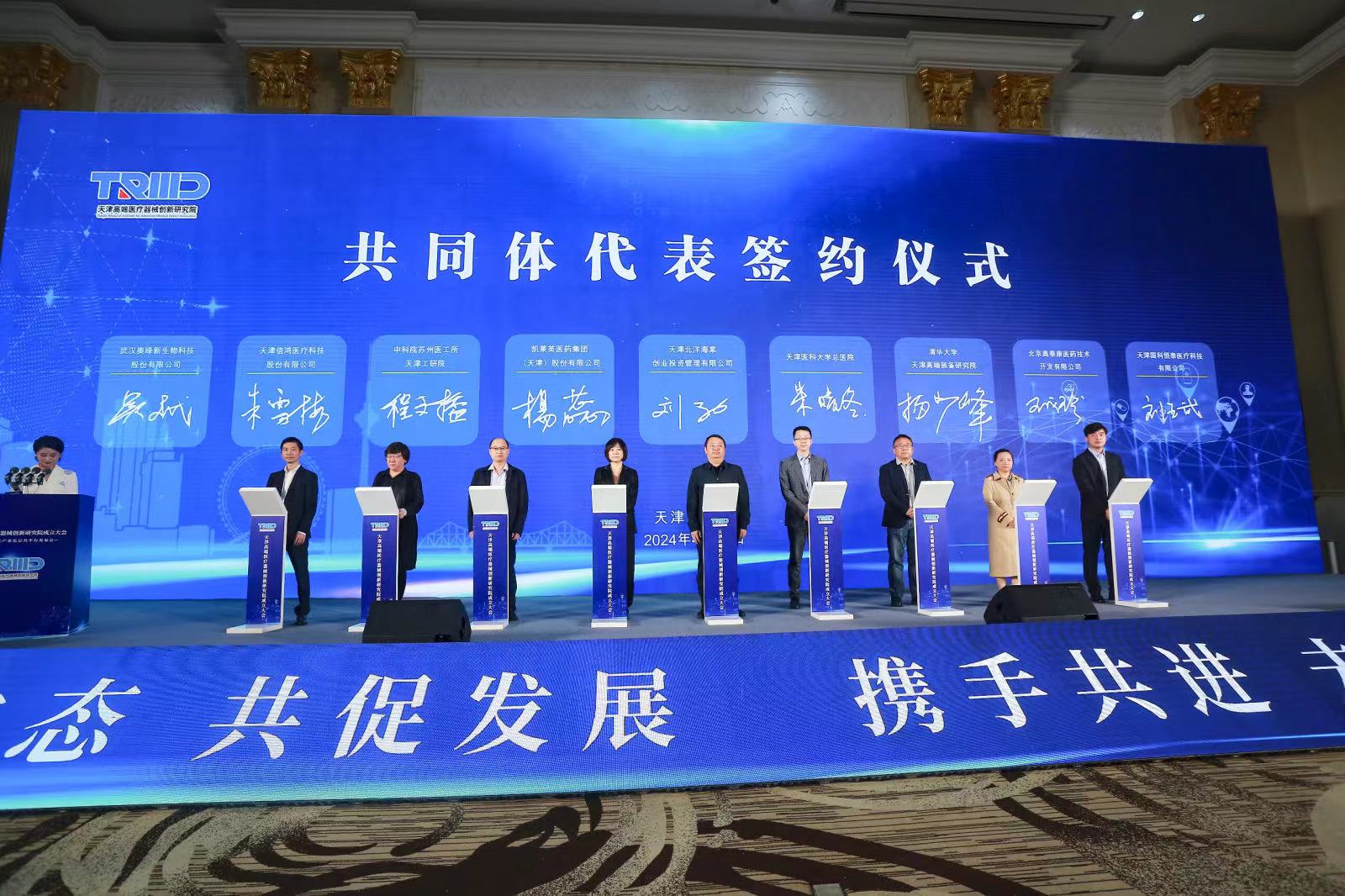 2024年4月24日,由天津市市場監(jiān)督管理委員會、天津市藥監(jiān)局、天津市科技局、天津市衛(wèi)健委、天津市教委、天津市醫(yī)保局和東麗區(qū)區(qū)委區(qū)政府牽頭籌辦的天津高端醫(yī)療器械創(chuàng)新研究院成立大會暨創(chuàng)新轉化產業(yè)化公共平臺發(fā)布會于天津順利舉行。奧泰康集團副總王成珍女士受邀參加成立大會,并出席天津高端醫(yī)療器械創(chuàng)新研究院共同體代表簽約儀式。
